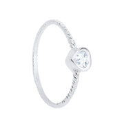 Anel Prateado Solitário de Coração em Zircônia