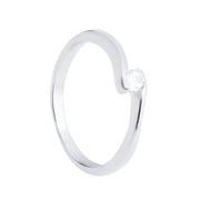 Anel Prateado Solitário Ponto de Luz Zircônia