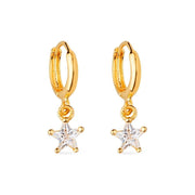 Brinco Dourado de Argolinha com Pedra de Zircônia em Formato de Estrela