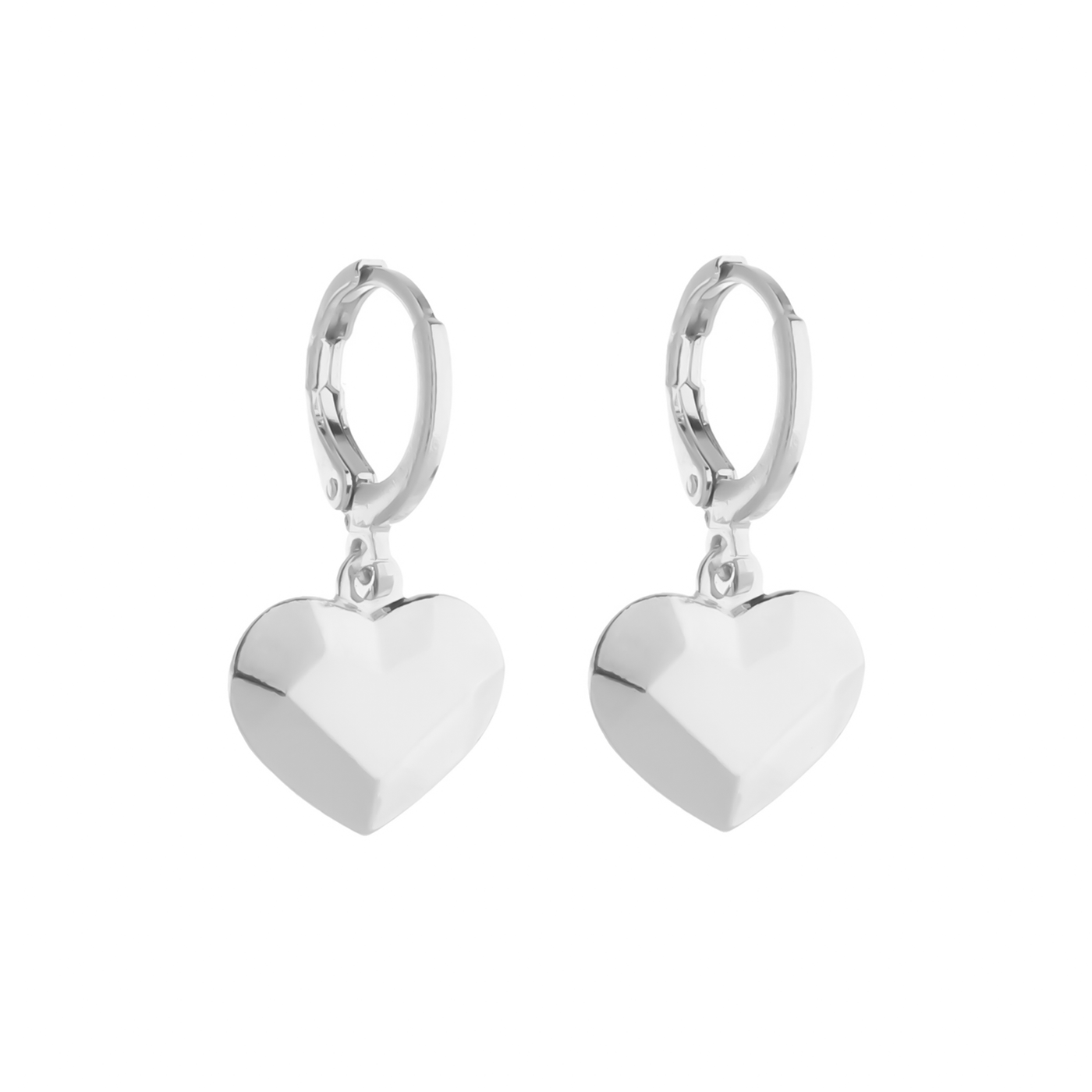 Brinco Prateado de Argolinha Coração Traços Retos