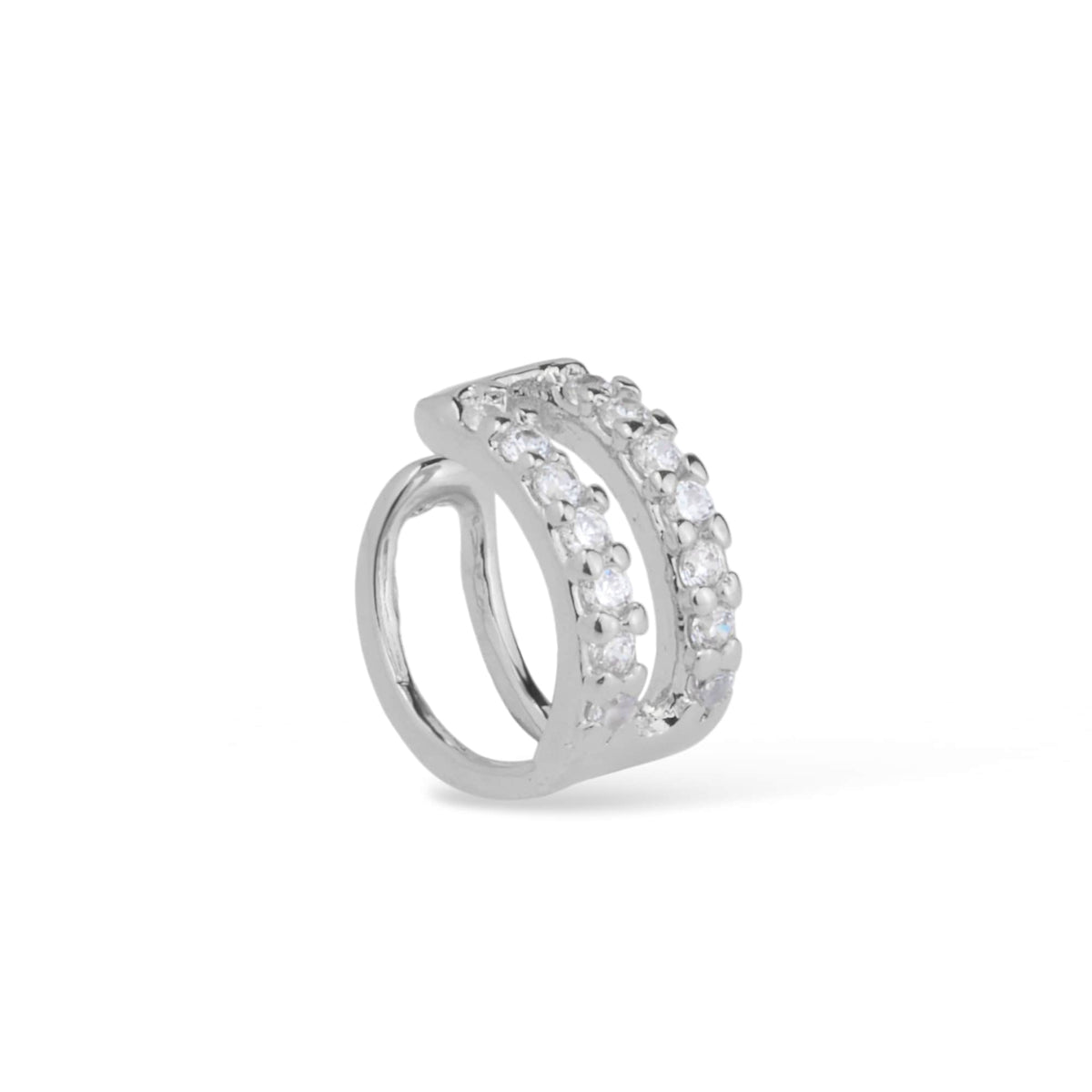 Piercing Prateado de Pressão com 14 Pedras de Zircônia