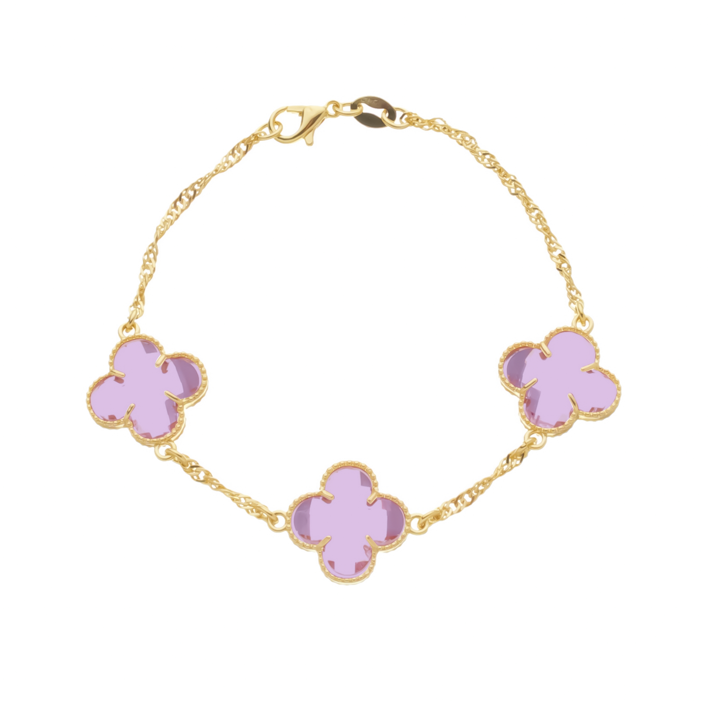 Pulseira Dourada Trevos Zircônia Rosa