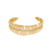 Bracelete Dourado de Pena Cravejado de Zircônia