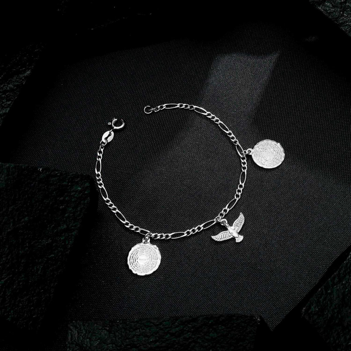 Pulseira Prateada Religiosa Pai Nosso e Espírito Santo